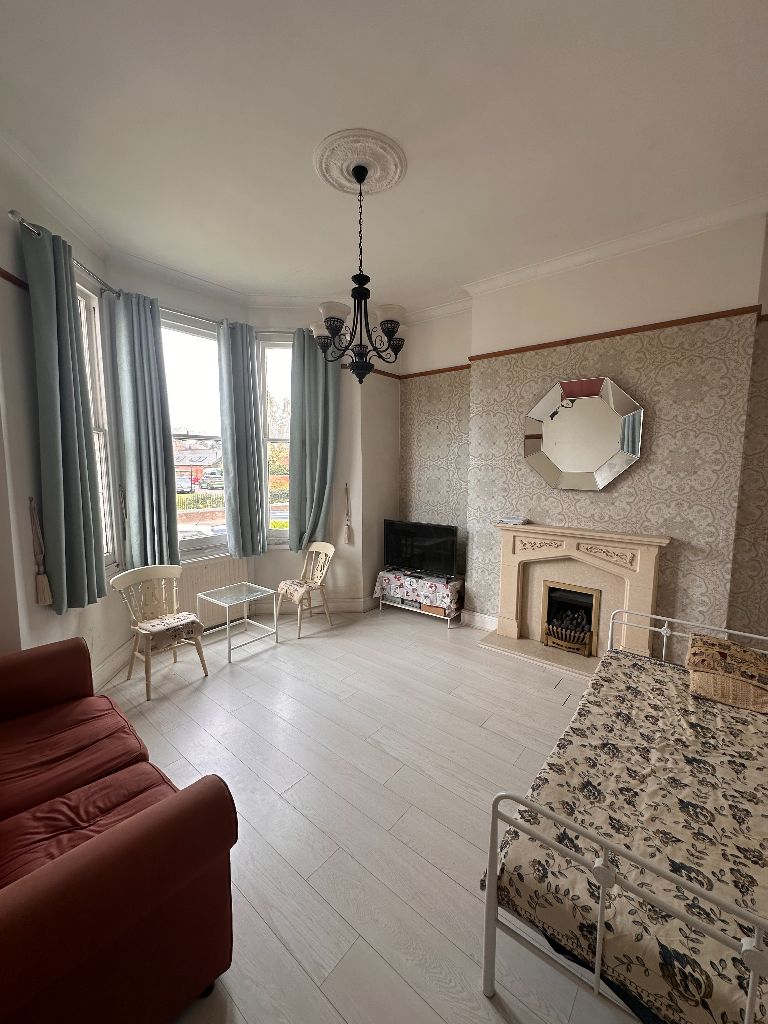 Spacious with laminate flooring, stone fireplace and painted white walls and large Single-glazed Bay window to the front.