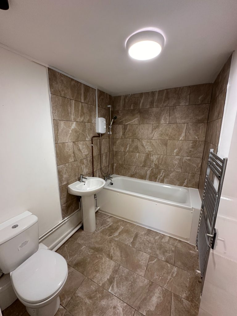 • Modern Separate Bathroom with Shower Over Bath