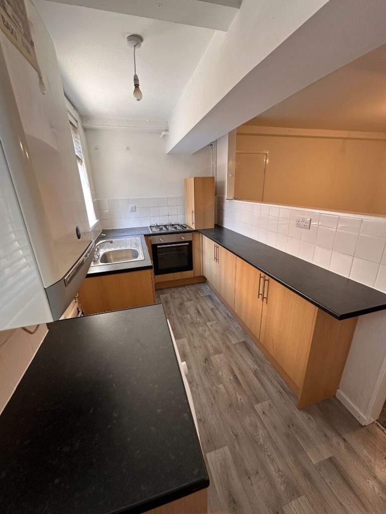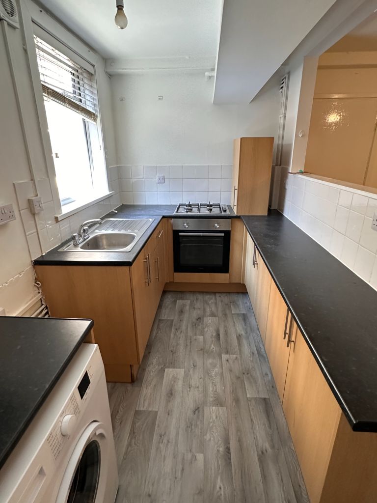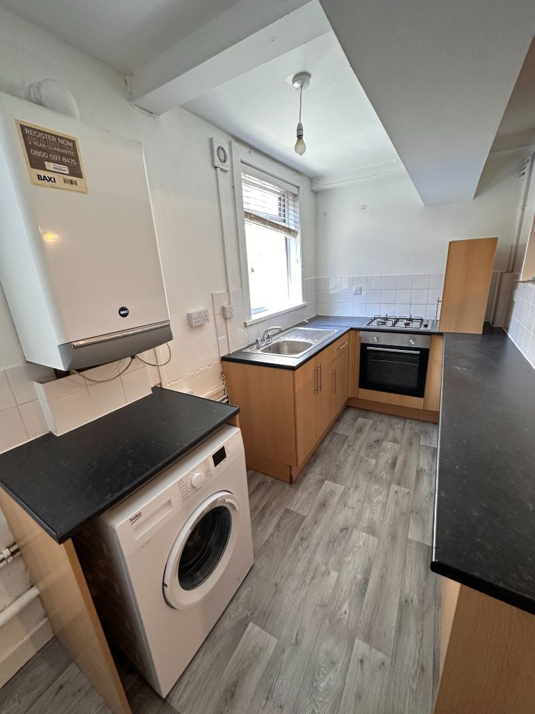• Open Plan Kitchen Fitted With Gas Cooker, Washing Machine and Fridge/Freezer.